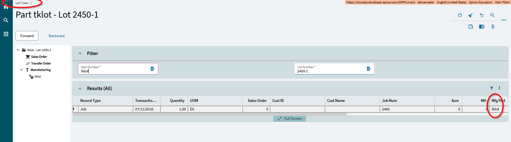 OH… and if you do this, then the PartTran table shows the legacy of the lots. you can see every place that lot was used/shipped over time. You can build queries. But there is also the “Lot Trace” program that shows both where Forward and Backward tracing.. this screen is part of core kinetic.