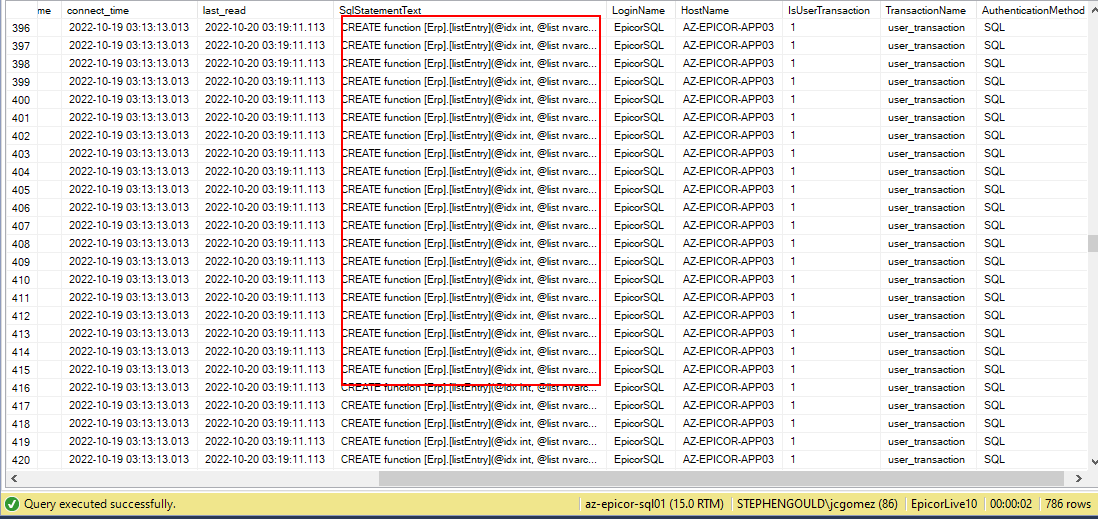 at Ice.Extensibility.AppserverStartupEvents.AppServerStartupEvent.ExecuteSQLQueryAndAppendToStringBuilder(IceContext ctx, StringBuilder sBuilder, Func`2 stringBuilderAction) in C:\_Releases\ICE\RL10.2.600.0FW\Source\Server\Internal\Extensibility\AppserverStartupEvents\AppServerStartupEvent.cs:line 158