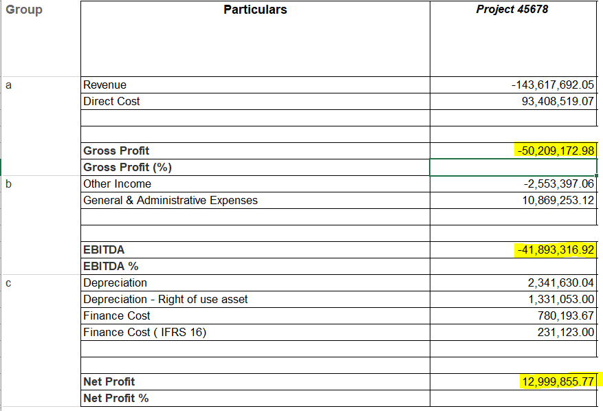 I have designed a report to show a Project wise Profit and Loss details as shown in the below screenshot