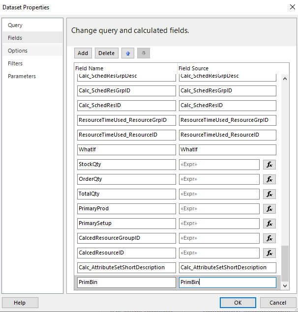 ="SELECT T1.DueDate,T1.IUM,T1.ProdQty,T1.ReqDueDate,T1.StartDate,T1.Calc_MultiJobParts,T1.Calc_OrderQty,T1.Calc_StockQty, T2.AssemblySeq,T2.BomSequence,T2.Company,T2.[Description],T2.DrawNum,T2.IUM as JobAsmbl_IUM,T2.JobNum,T2.OverRunQty,T2.PartNum,T2.PullQty,T2.RequiredQty,T2.RevisionNum,T2.Calc_BCAsmSeq,T2.Calc_BCJobNum,T2.Calc_BCPartNum,T2.Calc_BCRevNum,T2.Calc_comment, T2.Calc_AttributeSetShortDescription, T3.CommentText,T3.Instructions,T3.DaysOut,T3.DueDate as JobOper_DueDate,T3.EstProdHours,T3.EstSetHours,T3.Machines,T3.OpCode,T3.OpDesc,T3.OprSeq,T3.PrimaryProdOpDtl,T3.PrimarySetupOpDtl,T3.ProdStandard,T3.RunQty,T3.StartDate as JobOper_StartDate,T3.StdFormat,T3.Calc_BCOpCode,T3.Calc_BCOprSeq,T3.Calc_DispStatus,T3.Calc_OPText,T3.Calc_OPType,T3.Calc_PurPoint,T3.Calc_VendorId,T3.Calc_VendorName,T3.OpCode_OpDesc, T4.CapabilityID,T4.ConcurrentCapacity,T4.DailyProdRate,T4.OpDtlSeq,T4.ProdCrewSize,T4.ResourceGrpID,T4.ResourceID,T4.SetUpCrewSize,T4.SetupOrProd,T4.Calc_BCCapabilityID,T4.Calc_BCResGrpID,T4.Calc_BCResourceID,T4.Calc_CapbltyDesc,T4.Calc_ResDesc,T4.Calc_ResGrpDesc,T4.Calc_SchedResDesc,T4.Calc_SchedResGrpDesc,T4.Calc_SchedResGrpID,T4.Calc_SchedResID, T5.ResourceGrpID as ResourceTimeUsed_ResourceGrpID,T5.ResourceID as ResourceTimeUsed_ResourceID,T5.WhatIf,T6.PrimBin