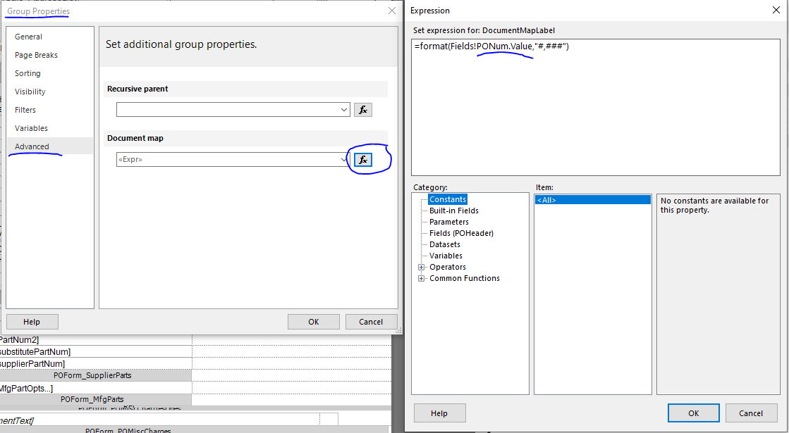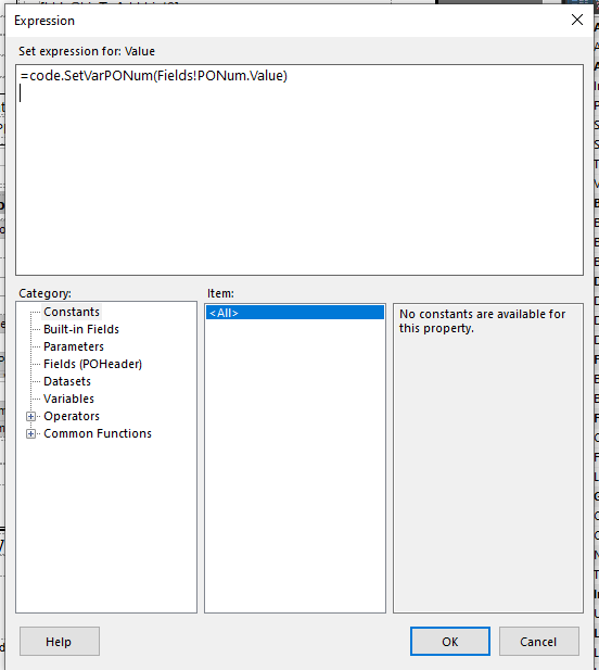 Can you just put this in that textbox? I have a feeling that it’s blank =Fields!PONum.Value