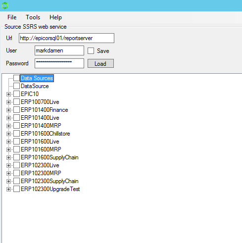All apps in the 10.2 setup refer to the same SSRS URL. How do I differentiate which DB is used when using tools outside of E10. For instance, ReportSync only asks for the SSRS URL. In the pict below, ReportSync is running ob the SQL server of my 10.1 system. The left side is connected to the local (10.1 SQL SSRS), and the right to the SSRS for my 10.2 system.