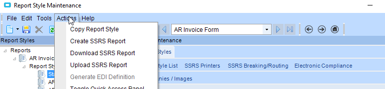 Well, in the more recent versions of SSRS reports, you can provide images for some of the standard reports without editing the standard form. If you need to download and edit a form, you can do that too. All of this is controlled by Report Style Maintenance. The Help file is pretty straightforward on how to download/upload or assign an image. You’ll have to download Microsoft’s Report Builder 3.0 (free) to make changes to your SSRS reports.