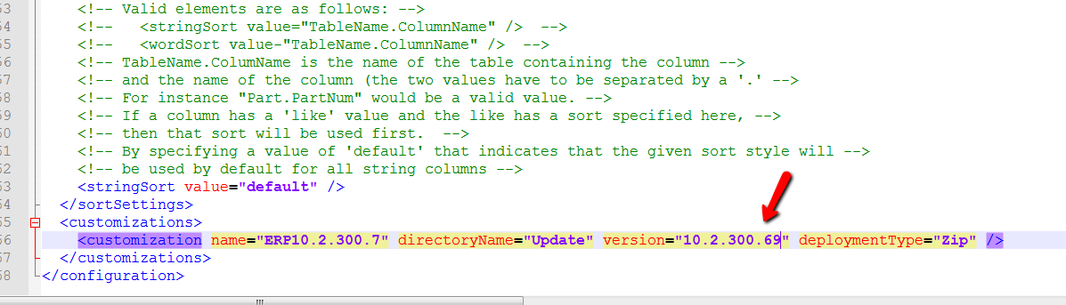 So I changed the value to 10.2.300.5 (the version that environment is on)…it updated and everything worked fine. (but the sysconfig still reads 10.2.300.2…)