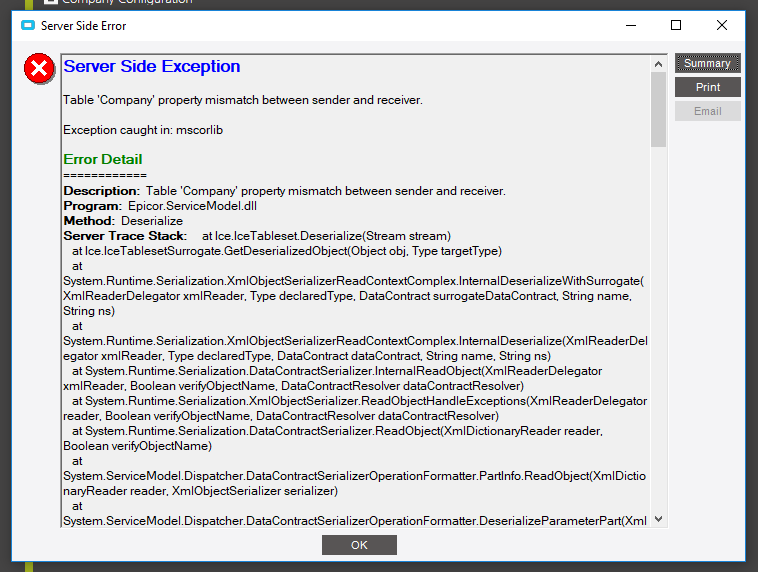 I noticed it first when I went in Production and tried to access company config and got the following errors. It will eventually open but with a not data. (I get the same error when I open PO Entry)