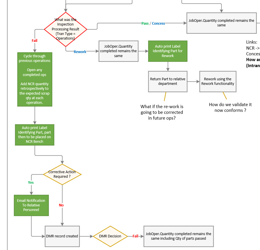 We don’t even let operators scrap parts. Only nonconform. Everything flows through the NC/DMR process. If the piece is just missing some milling, we approve the piece for rework and send it back the original job. Sometimes we re-engineer the job to add a rework op. If there’s a significant time lag, or a lot of rework, the piece will be split off into its own job.