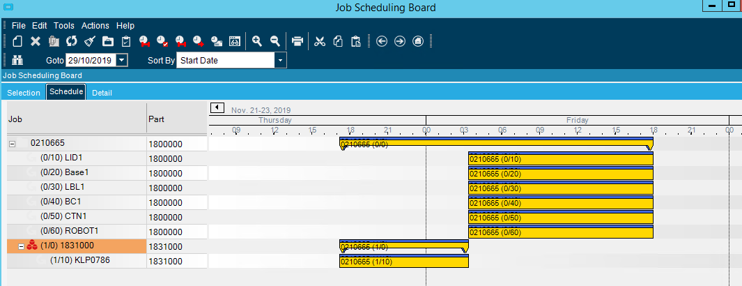 The current job is scheduled as below, note that ASM 1 is finished before ASM 0b OP 010 is schedule to start