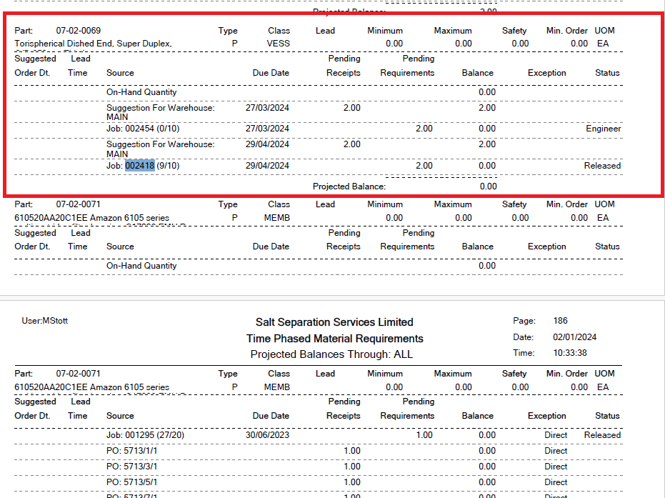 Should I still see the pending requirements on the parent 002418 as well as the child 002454