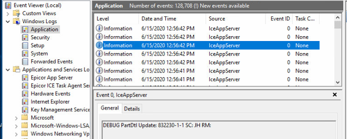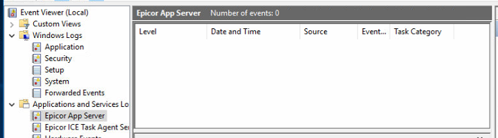 Events that used to go into Epicor specific logs? Some processes initiated by the App Server may normally create entries in the Windows Applications logs.