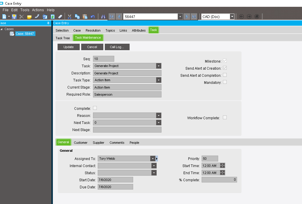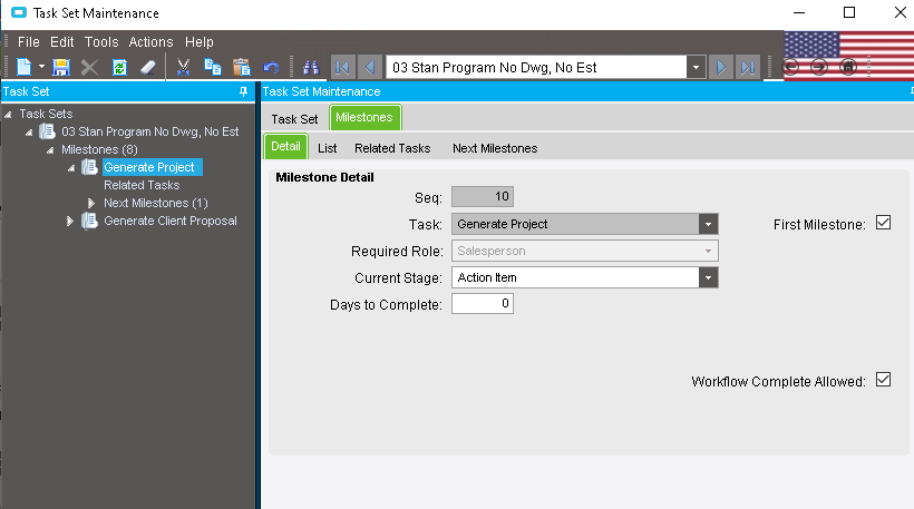 I’ve created a CRM task set for Opportunity/Quote Entry to track the quote from sales inquiry to engineering release. There is a unique role to each step, but I am having difficulty having the task sent to the next user responsible for that step. From what we’ve tested, when the first task is completed, the next task defaults to the primary salesperson for that customer. They or an authorized user can change the task’s responsible party, but what we would like is to have that already set up in CRM/task set, so when a task is completed, it should proceed to the next task and assign it to the person responsible for that task. Is there a way to do this in E10?