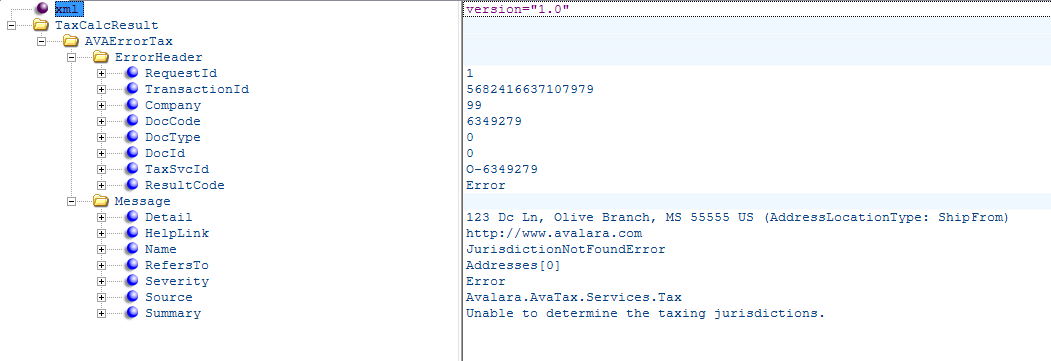 I am fairly new to working with Tax Connect and Avalara. While debugging a BPM conflict with Tax Connect, I turned on the Tax Connect Debug Mode and found that I was getting …xml.out xml files. When I opened one, I found that it was an Error return. Here is an example:
