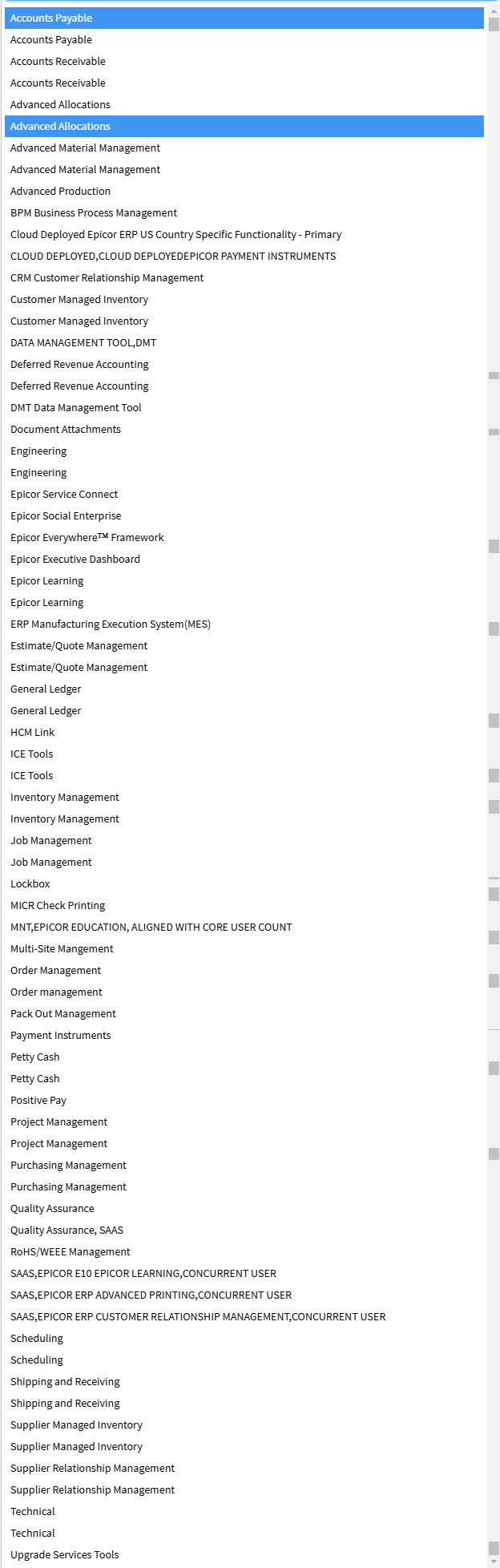 I would think they would have access to a list of the licenses that are owned, and trim the list only those modules.