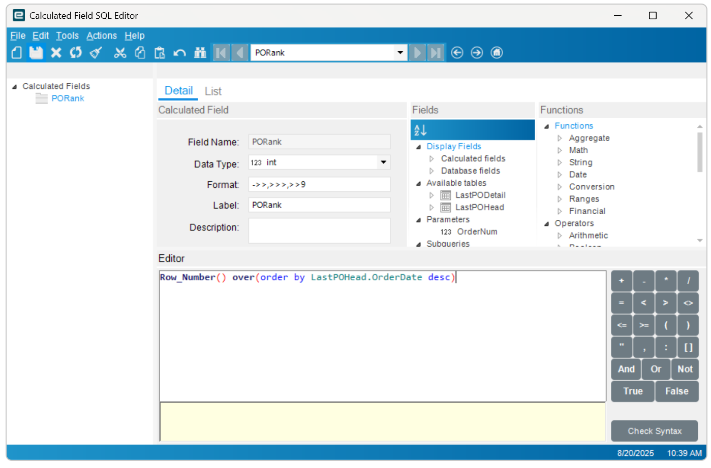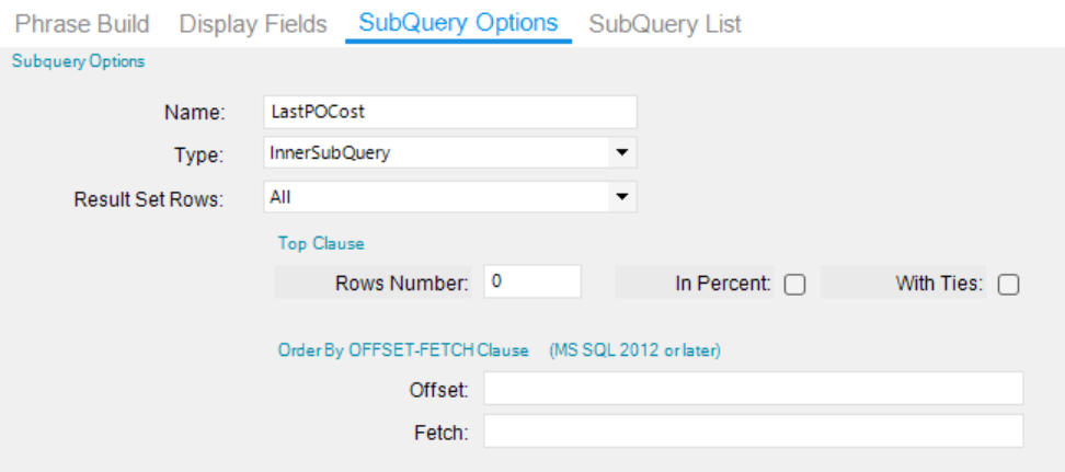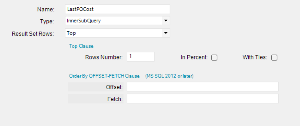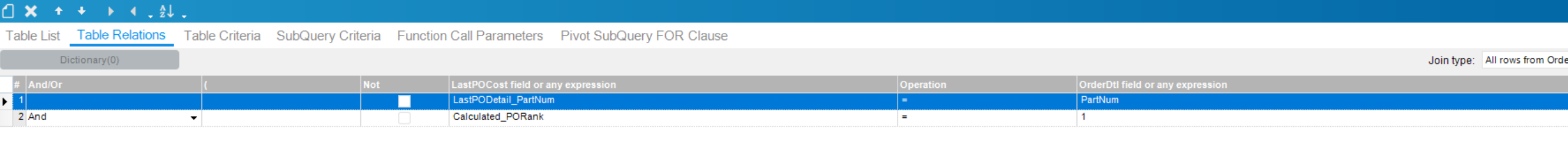 Now, for this part number, I know there’s only 1 po out there for it, and if I convert it to a standard innerSubquery the value returns fine, but that won’t always be the case.