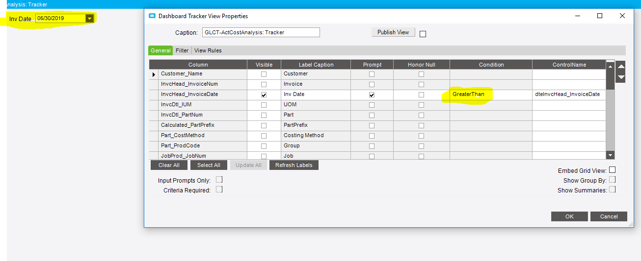 Okay, thanks. I ended up just adding parameters to the BAQ instead also. I wanted the tracker view in the dashboard for consistency, but the parameter feature was just as good in the end.