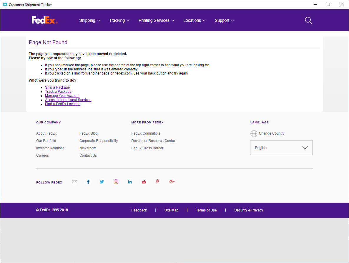 I wonder if it could be something in the users browser, or maybe the page on the FedEx site has an issue. Something not under the control of E10?