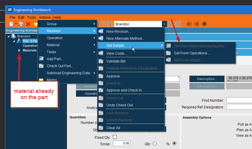 It’s because you already have operations on the part. In engineering workbench, you can’t keep adding methods like you can in the jobs.