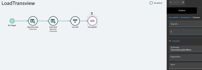 You only need the data-clear widget, the dataview-clear is just the older version. You also shouldn’t need the row-add widget at all, I’ve only ever used the row-update to initialize transview and I just posted in another thread showing how to use that to set an initial date to a transview field.