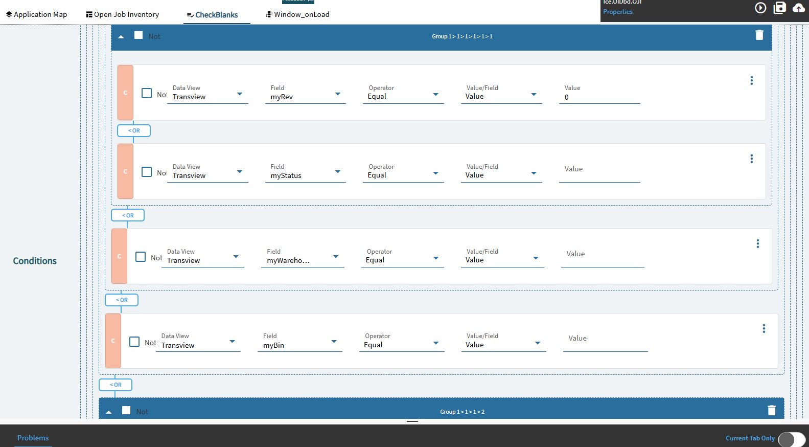 I have a lot of fields so it’s a combination of the nullValue and specific values, but all of my conditions are on fields in the dataview that exist in the database, not transview fields that are being created on the fly.