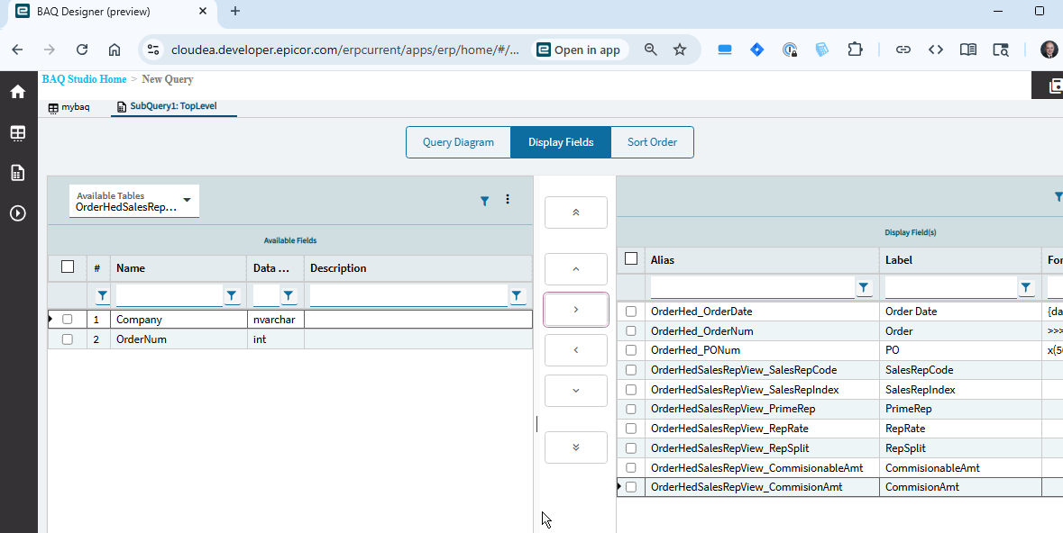 then you can select the fields in teh salesrepview to be displayed⌠they are already split out for you. If there is one rep, then you will get one record. if there are 3, then you will get 3 entries. no need for complicated query anymore. it âlooksâ like a separate table with this view, even though it is still stored in the table the old way. We did this so that anyone who had already created BAQs/Reports to handle it the old way was still supported, but anyone new can do it easier.