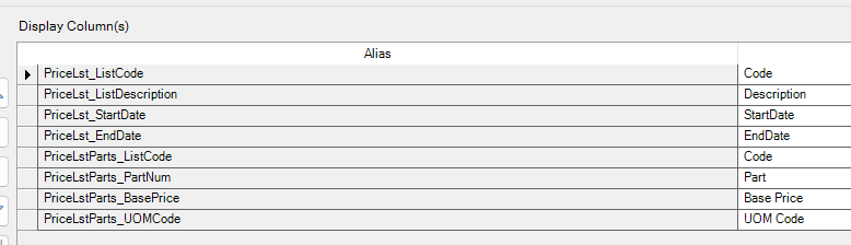 Okay Gurus, I’m trying to create an updatable BAQ for Price List updates. I figured I would start with a very basic uBAQ. I only added the PriceLstParts table. I then added the basic fields for ListCode, PartNum, BasePrice and UOMCode. First, I just want to get it to update a field. I chose the BasePrice. I’ve setup uBAQ for part information before with no issue. But, for some reason on this table I keep getting and error message “Update not allowed”.