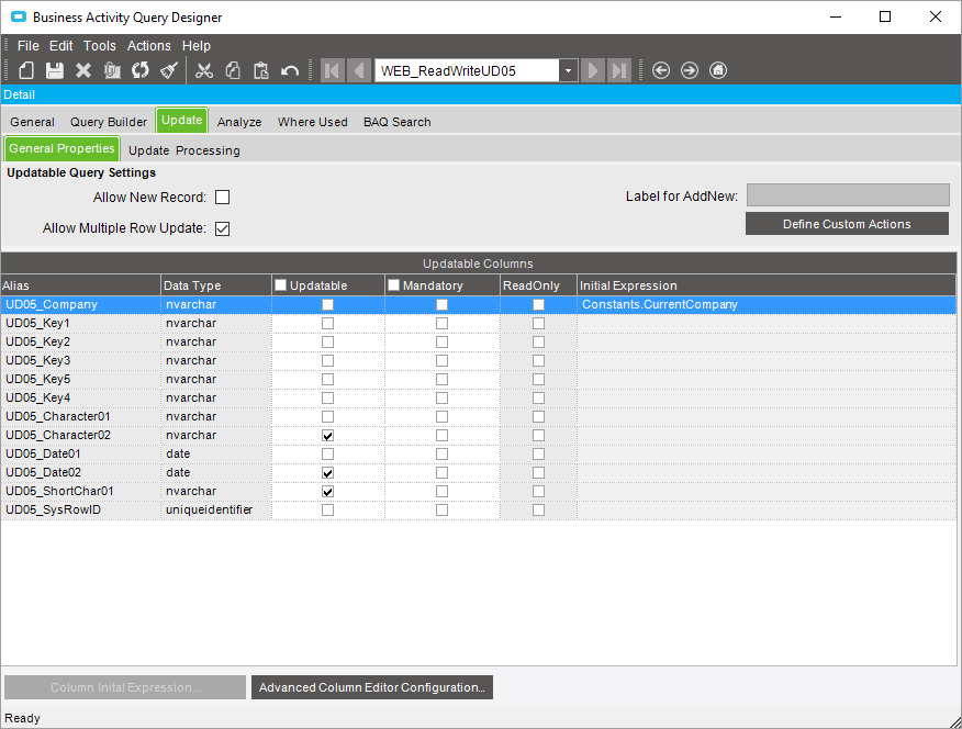 I am talking about updating the base processing of the UBAQ. I am only suggesting this on UBAQ. This might not work for what you want it to do. This will allow you to update individual fields at least. I am sure there are other techniques to use.