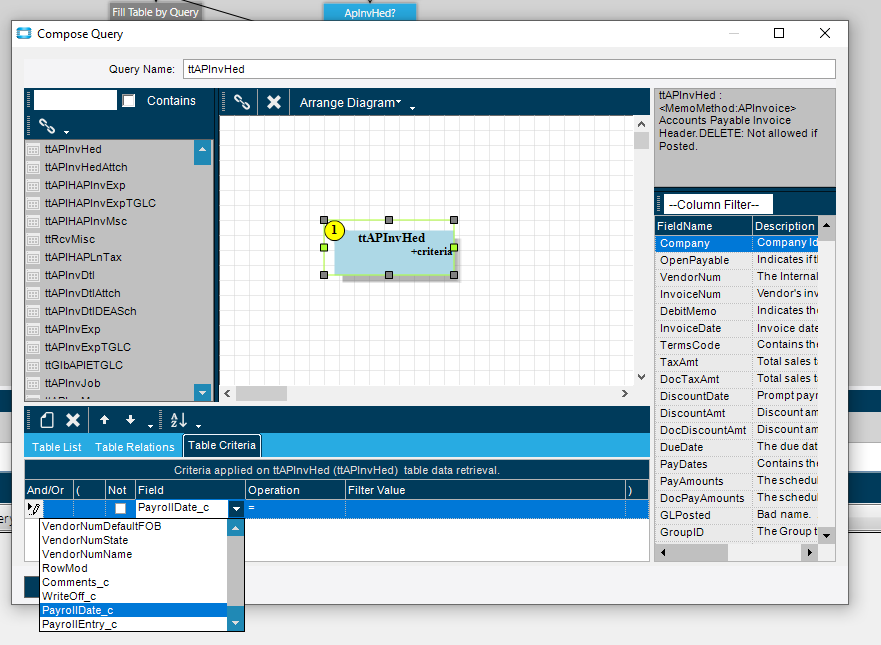 errors telling me that PayrollDate_c field is not available in ttAPInvHed.