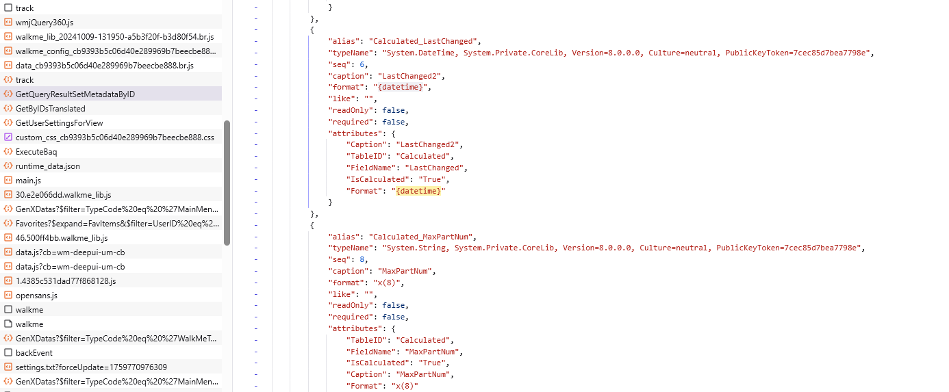 Curious what Format value in GetQueryResultSetMetadataByID response just before ExecuteBaq request. Wonder whether there was a diff between date field and calculated date field.