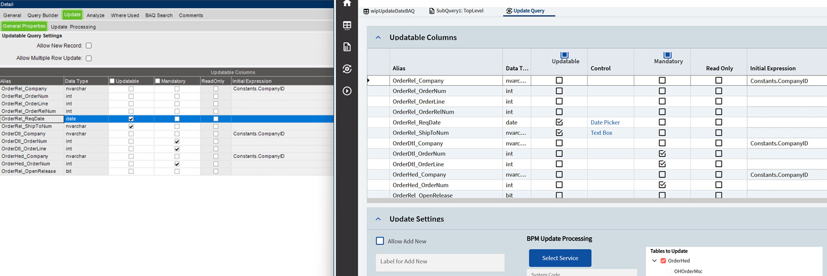 Weird, I just tried to create a quick dashboard with a uBAQ that updated OrderRel.ReqDate using standard BO update and it worked fine.
