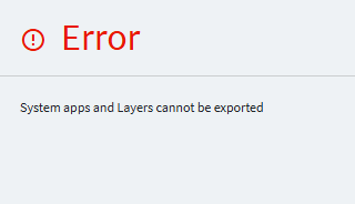 Has anyone received this error when exporting App Studio layers? I select my Ice.UIDbd.xxxxxxxx Application ID > Overflow menu > Export > get this error. All of the layers I’m trying to export are from dashboards manually created, nothing built off of “Systems apps and Layers”.
