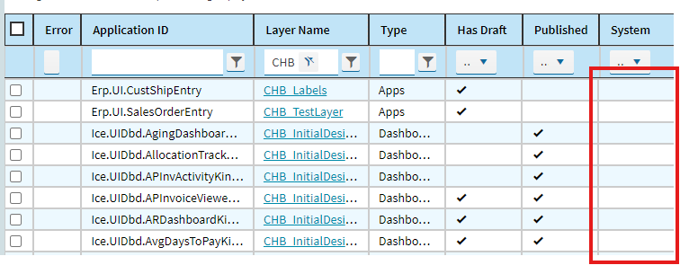Yes, there is a bug but also a datafix from Epicor you can get to unmark any custom layers, dashboards, etc that the bug marked as System. To save you time, make a BAQ like below and add it to the case so they can make you the datafix.