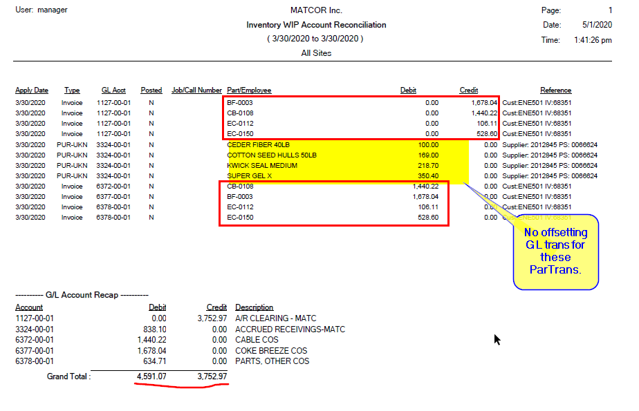 Well… I’ve know it doesn’t balance from the start… I pointed out the trans in the original post that have no offsetting GL Tran