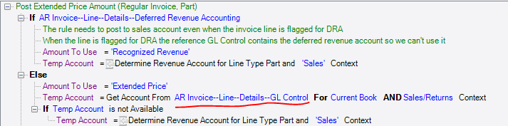 This means this will be used in the posting rules instead of the usual rules(if you didn’t enter any account it will execute function “Determine Revenue Account for Line Type Part…”)