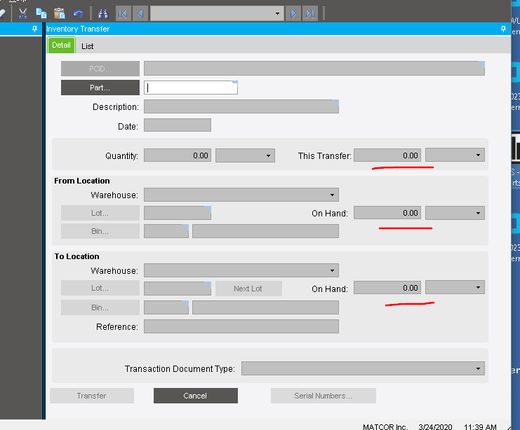 As noted the settings on these PN’s do not change from when the instance of the problem occurs to when it’s corrected, so there is no way a UOM would be set to not accept decimals before they opened the window and changed back to accept it before re-launch since I’m the only individual who can make those changes. And they are not serialized parts otherwise closing and re-opening the application would not result in it now being a possible task, it would still prevent it.