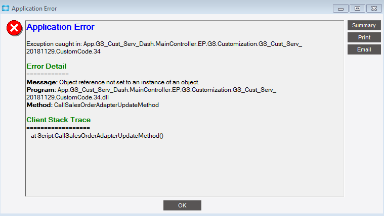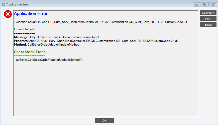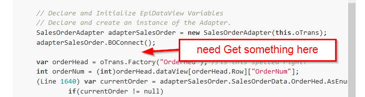 (Line 1640) var currentOrder = adapterSalesOrder.SalesOrderData.OrderHed.AsEnumerable().Where(w => (int)w["OrderNum"] == orderNum).FirstOrDefault();
