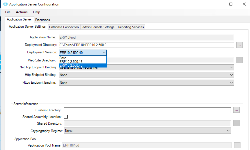 Here are my concerns. I have upgraded from 10.2.500.16 to 10.2.500.40 but cannot remember how to do one part. I have attached the screenshot that shows the dropdown where prompts you to choose the deployment version. How do I get that deployment version to show the 11.2.XX versions? Is it safe to install that 11.2.XX version on the same SQL server as our Prod instance for 10.2.500? I tested this on my Windows VM and it made me install the base 11.2.100.0 version first, then I ran the .exe for .26 and I was able to get the admin console to open. I just want to try and install this myself and test for proof of concept. Is there anything else that I am missing?
