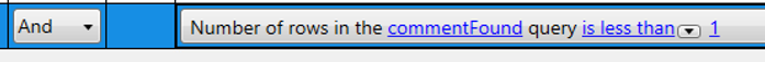 Or you can use a Number of rows in the query is less than 1 and do a matches for some part of your comment, but then you have to append the comment to the existing field rather than just set the field.