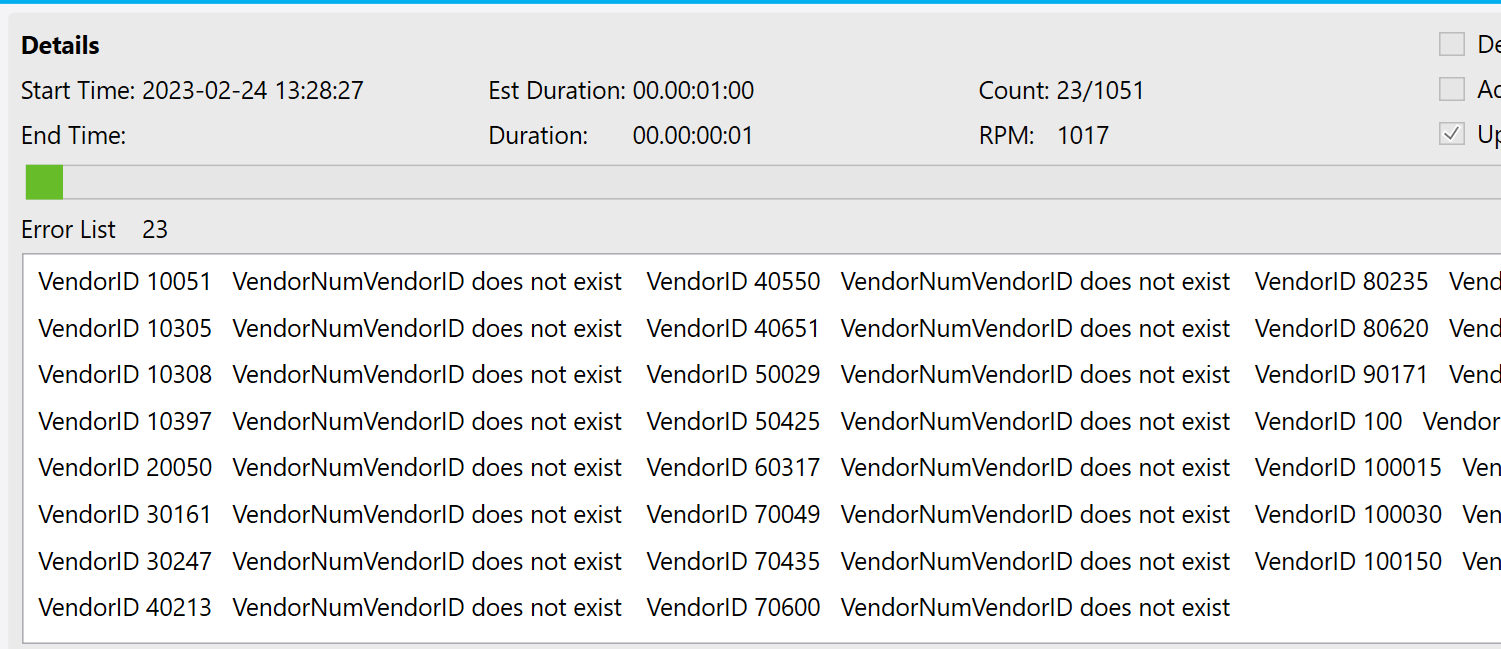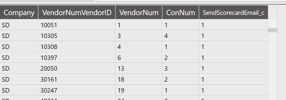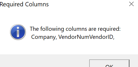 I’ve tried it with just those fields and it failed. I added ConNum and it also failed. I added VendorNum and it failed.