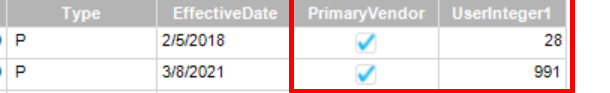 Thanks @jkane … but unfortunately, PurchaseDefault field appears true in all cases when pulling it into the BAQ, while I can see the Primary Vendor false on one of the records.