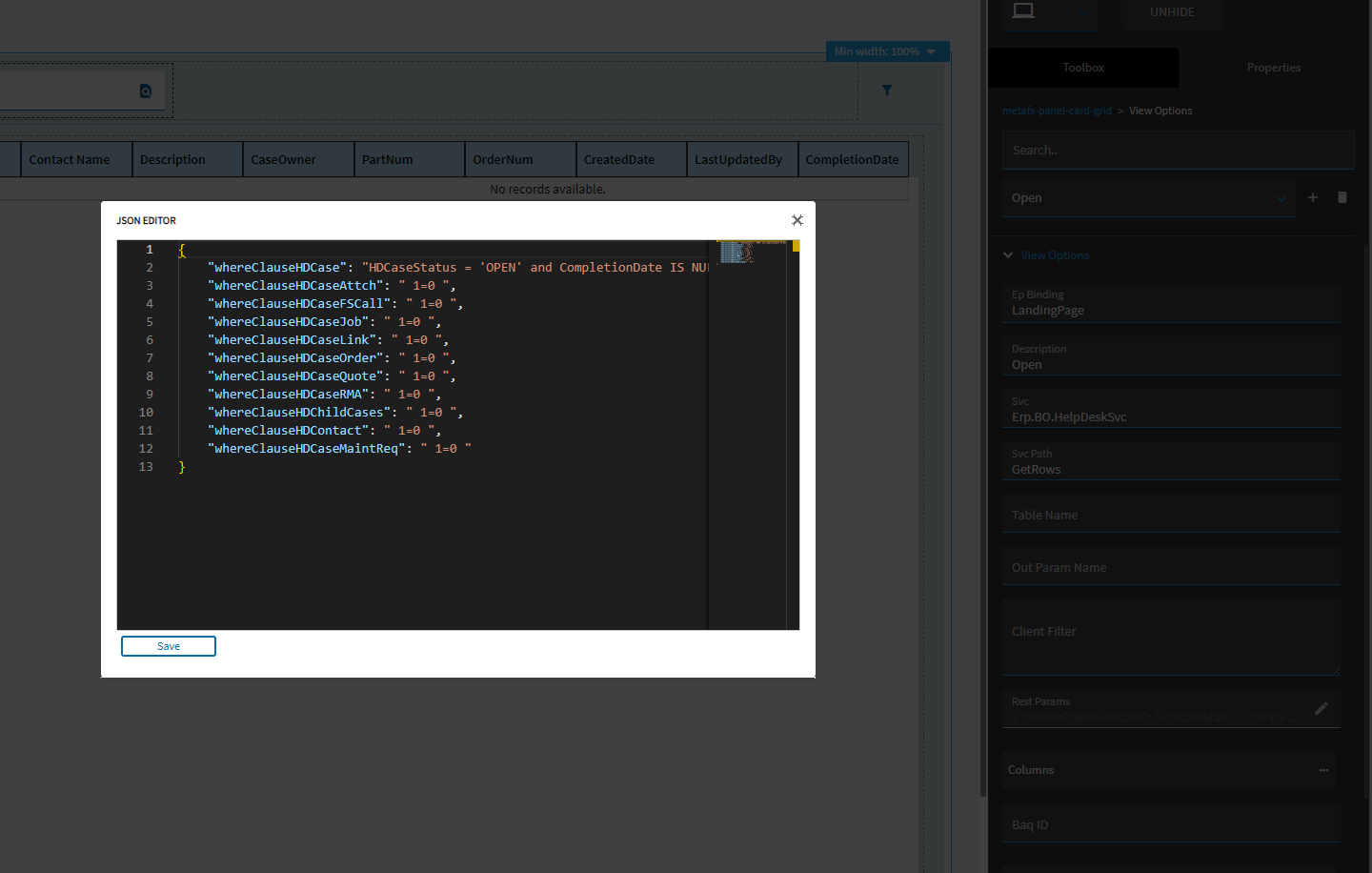 Yeah, I think this method would be more intuitive. But I’m using BAQ, not the BO service. I don’t want to mess things up by changing it. I’m trying to create a new application using the “New Application Wizard” because there’s a step to build view options. Hopefully this would work.