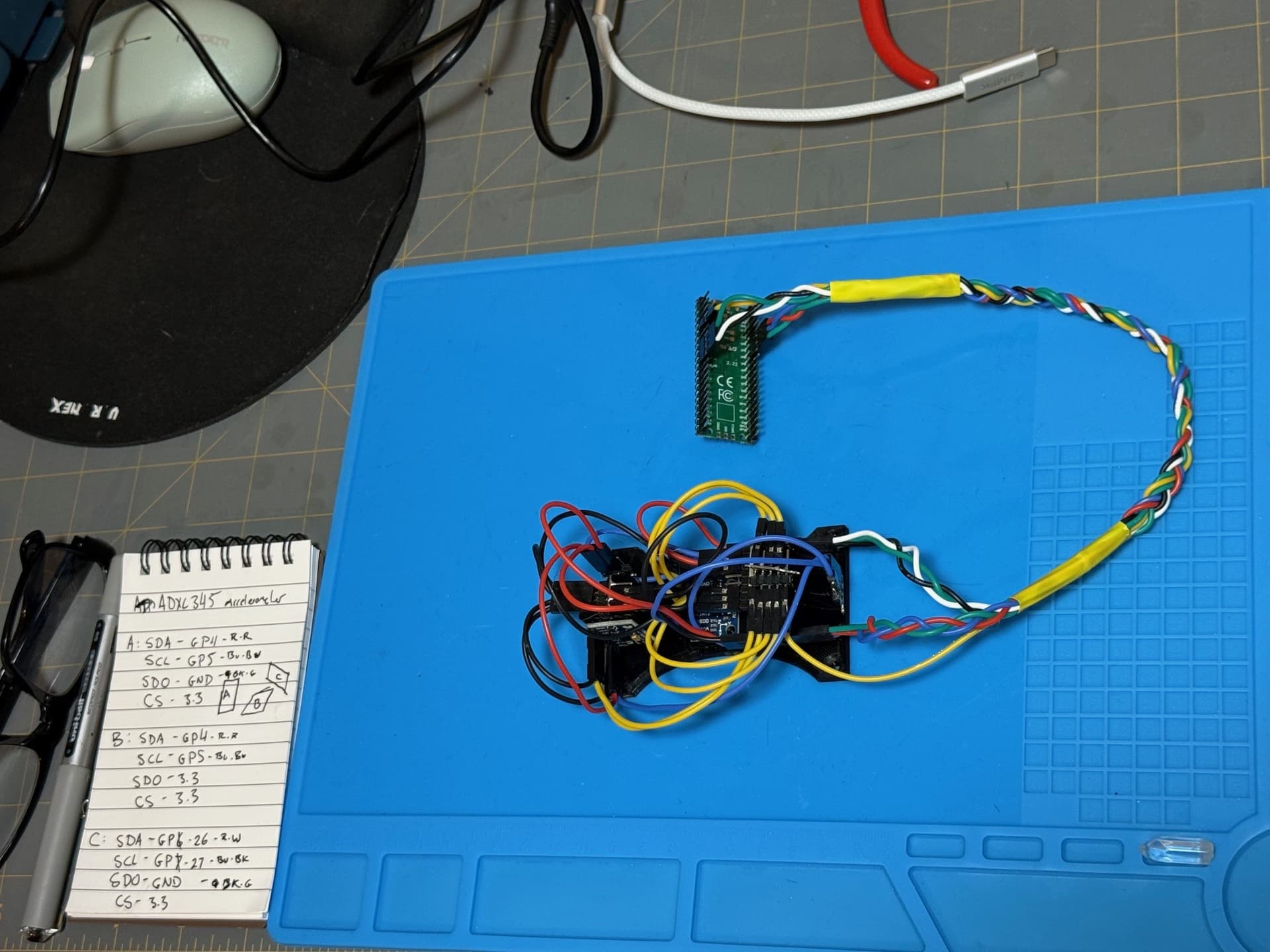 These sensors are all gathered with a few raspberry pi picos. That data is streamed out over USB via serial. All the picos are piped into a raspberry pi 4, that handles the visualizations and output.