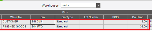 Also, checking the ‘Display All Bins’ checkbox is usually used when you want to select a bin that has zero Qty. When the box is unchecked, only bins with a non-zero qty are displayed.