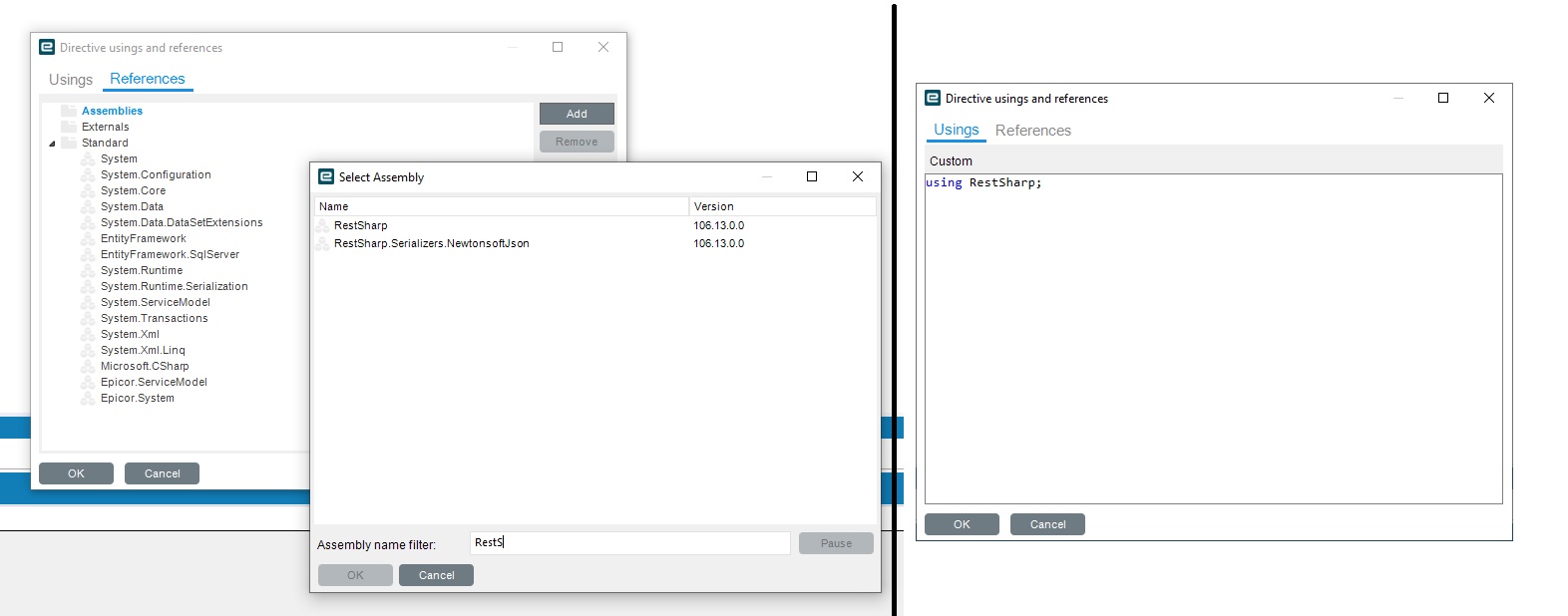 From what I’ve read, it looks like I need to add the restsharp dll to my externals folder. I’m assuming that applies to locally hosted Epicor. But there must be away to add the restsharp dll to epicor cloud. Any ideas?