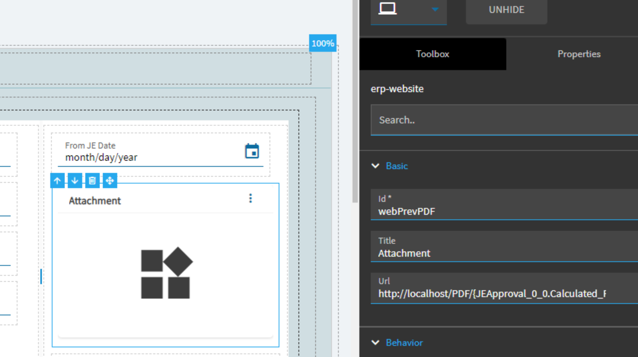 I’m trying to dynamically display a PDF file via a URL when a user selects a row in the data grid, but I can’t seem to get it working. If I hard-code the URL, it displays correctly. I’m using the Website widget under the Widgets tab. However, it seems like the widget isn’t recognizing the value in {JEApproval_0_0.Calculated_FileName}. For testing, I also tried setting the URL to a TransView var, but the screen still appears blank. Any help would be greatly appreciated!