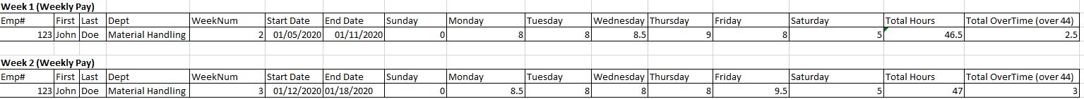 Mock up of the data I’m looking to return on the bi-weekly payroll BAQ is as follows: