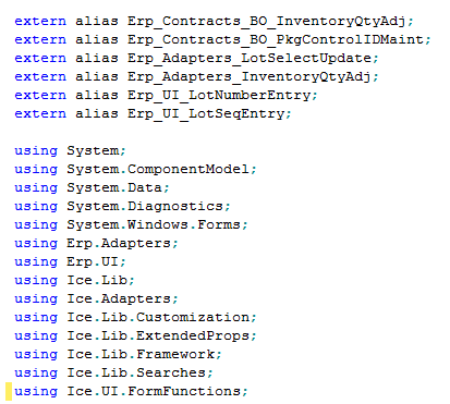 I was under the assumption that it pulled them in automatically when you add the custom adapters? extern alias Erp_Adapters_LotSelectUpdate;