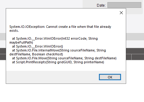 We have a customization on Receipt Entry that includes custom EpiButtons to send a PO to various printers in different locations depending on which one is clicked. This past weekend, we upgraded from Epicor 10 to Kinetic. Just now, when attempting to print a PO from the custom buttons, this error occurs, and nothing prints.