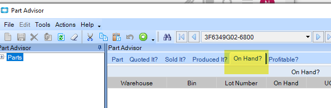 Also, I believe that Part Advisor worked for the on the fly part and would show on hand, highlighted tab screenshot. I think you can ship it if manually type in the part number and use the bin where it was received to.