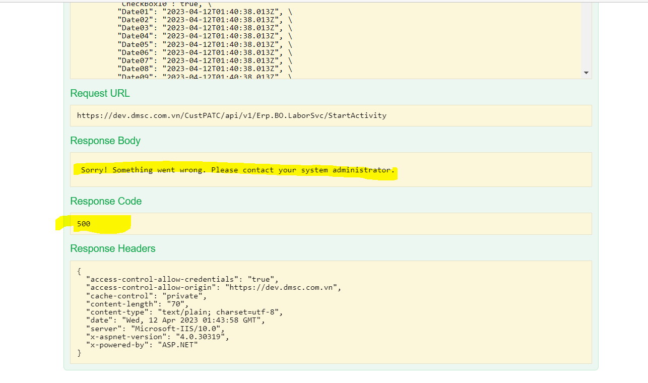 I want to test the methods through the API but there are some methods I get Sorry! Something went wrong. Please contact your system administrator.