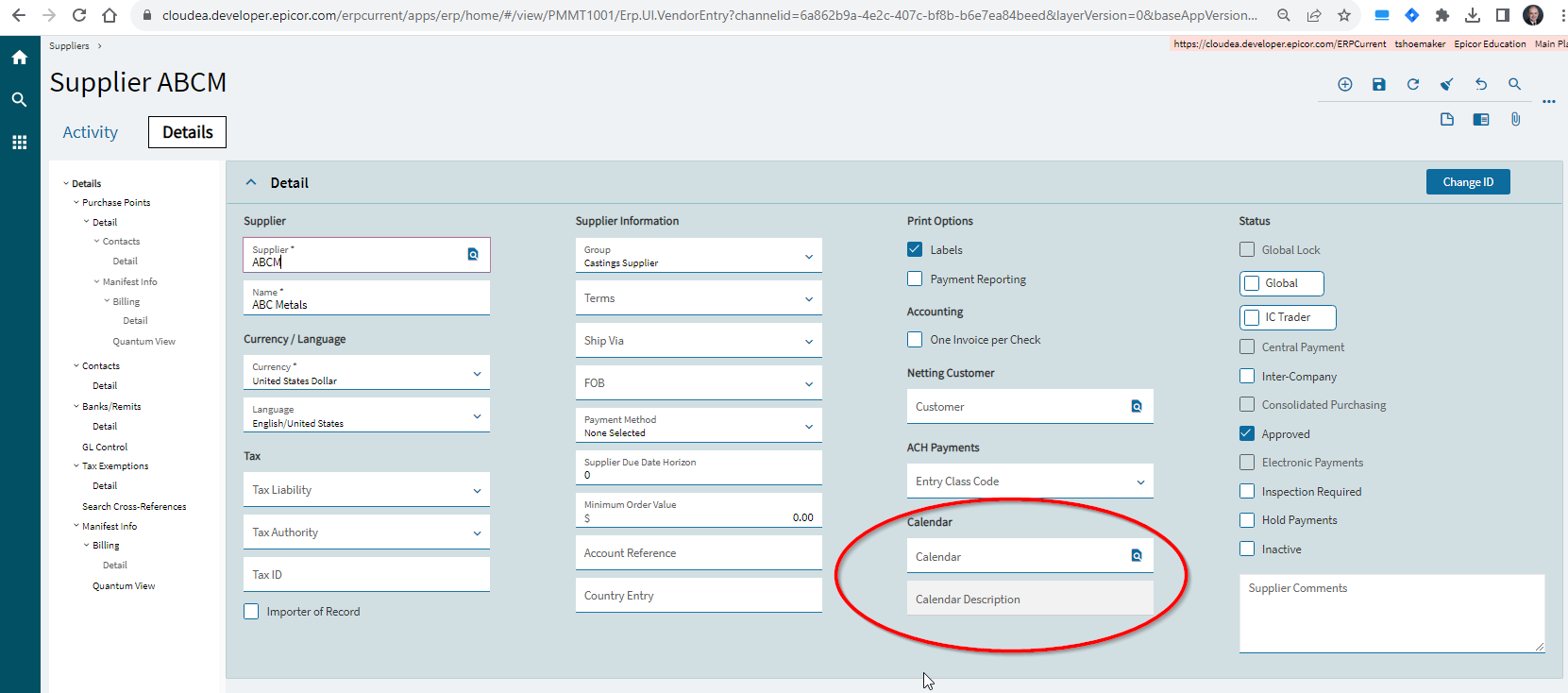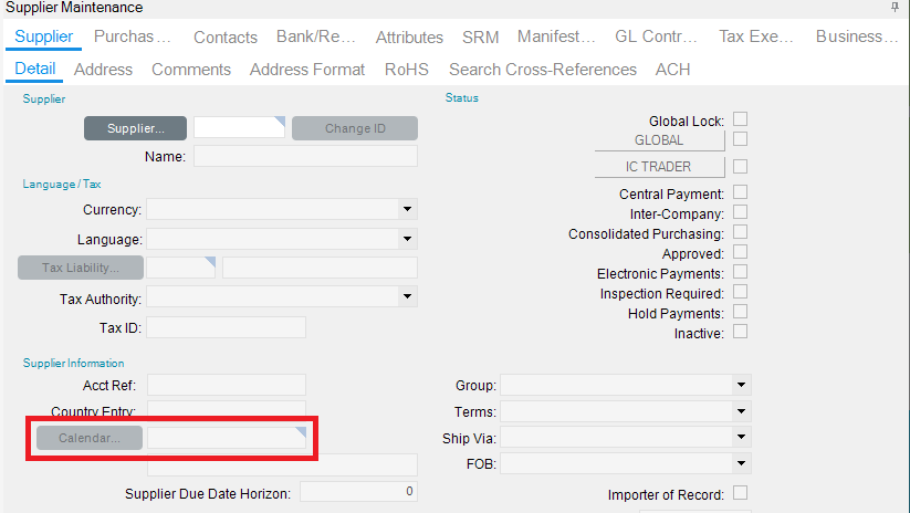 Can some one give me a screen shot of where we hook the supplier calendar to for MRP Planning. I have a calendar with the shut down periods so MRP calculates PO suggestions and for the life of me I can not find where I can hook it. All the documentation mention Supplier maintenance but I must be blind (lol) because I need seeing