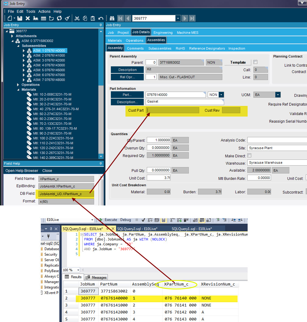 Because that particular record has nothing populated? the 002 one… You are on the JobAsmbl record, looking at a Sub Assembly, which probably isn’t handled the same. Either a missing Epicor Event, or another Table (not sure, dont have anything done on JobAsmbl)